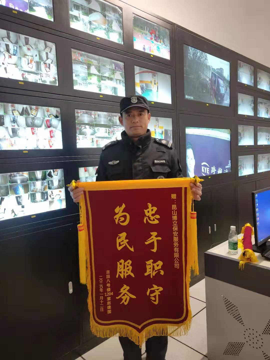 江苏博尔立物业管理有限公司派驻吉田住宅物业公司保安团队,在队长王松林的带领下,按照物业管理的特点,站岗军姿挺拔,巡逻认真仔细,人员车辆进出管控有序,时时刻刻为小区业主着想,业主有什么生活上的困难,只要力所能及,都积极想办法帮助解决,小区业主十分感激,特赠送“严格管理,热情服务”、“忠于职守,为民服务”两面锦旗。同时受到吉田住宅物业公司领导的称赞,也赠送“工作敬业,团队表率”锦旗一面,以资鼓励。见下图: